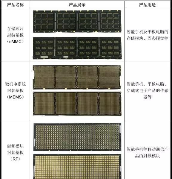 首先来看看深南电路在封装载板市场的情况!据了解,深南电路生产的封装基板产品大致分为五类,分别为存储芯片封装基板、微机电系统封装基板、射频模块封装基板、处理器芯片封装基板和高速通信封装基板等,主要应用于移动智能终端、服务/存储。