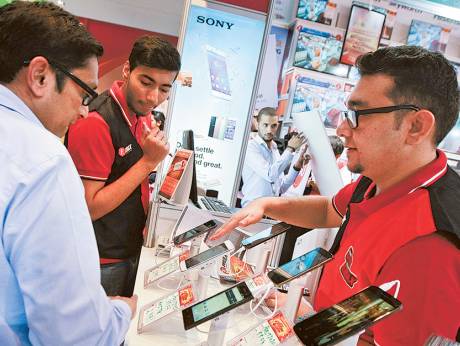 迪拜世界贸易中心用户正在购买手机