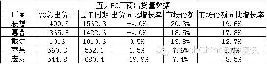 Gartner提供的五大PC厂商出货量数据,苹果超越宏基成为全球第四大PC厂商: