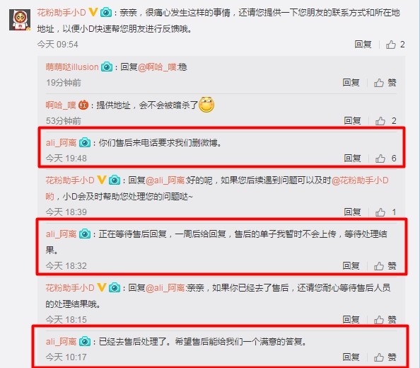 同时根据她的描述,华为的工作人员曾要求他删除微博,但是截止到本文发出的时间,这条微博并没有删除。