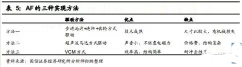 目前大部分手机已经实现自动对焦,手机透镜实现AF有三种方法: