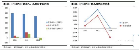 2013年,HYSONIC实现收入437亿韩元,约2.68亿人民币;同期营业利润为-47.5亿韩币,即亏损近3000万人民币。