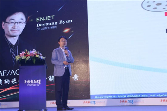 随后,来自韩国ENJET的CEO DoyoungByun探讨了5G时代来临之际手机机身结构中3D玻璃的解决方案。据悉,目前其公司主要提供世界上最先进的绿色无污染打印和喷涂技术,其产品包括纳米喷涂、纳米打印、FPD&TSP修复、纳米3D Dispensing。据其分析:“eNano喷涂采用纳米最优化结构,在3D喷涂方面,拥有电喷雾、防指纹喷涂(Anti-Fingerprint Coater)和防眩光喷涂(Anti-GlareCoater)多种解决方案。”