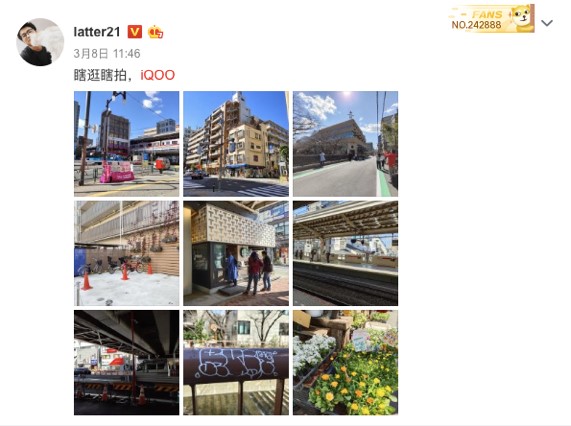 从用户的实拍样张来看,超广角、AI场景等功能大大提升了iQOO拍照的便利性。超广角所营造的视觉冲击力是普通视角所不具备的,而AI场景则可以识别人像、美食、鲜花等环境,有针对性的进行优化,样张效果更加出色。对于拍照小白来说,这种AI场景的好处显而易见,完全可以做到“一按快门即出片“,大大提高出片率及用户体验。微博网友“交广阿泰”、“latter21”晒出的iQOO超广角样张就极具视觉冲击力。