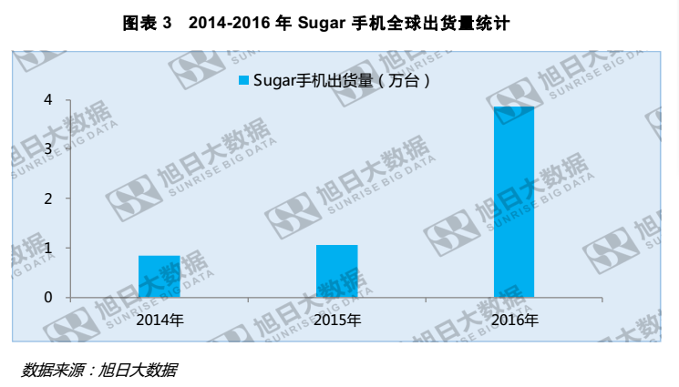 从近几年Sugar手机的出货情况看,Sugar手机一直活跃在欧洲中部以及西部国家。 出货量从2014年一万台以下的出货量,上升到2016年接近4万。Sugar正在大力布局国内市场,其线下渠道已经覆盖全国28个省市,今年将有望实现有效门店能达到1万家以上。预计今年Sugar手机在国内市场将有所突破,成为注重时尚的女性消费者主要选择之一。