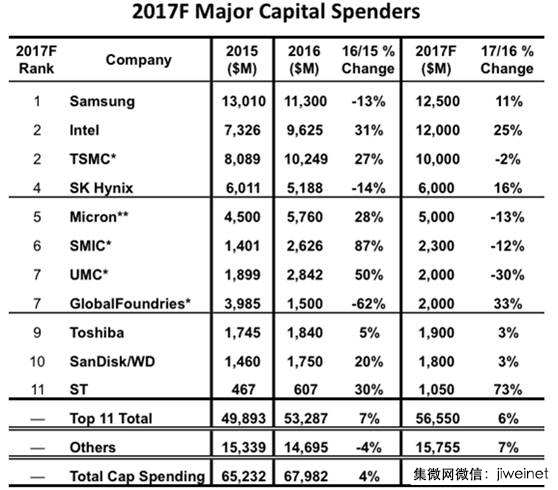 另外看2016年的资本开支,中芯国际已经追上了联电,双方的资本开支中芯为26.26亿美元,联电为28.42亿美元,已经相差无几。