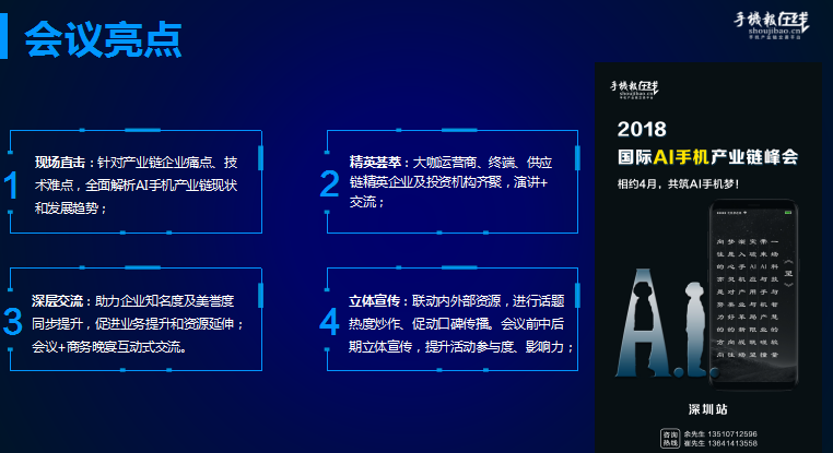 那么AI时代究竟能给手机终端、芯片/算法、摄像头供应链、设备厂商带来哪些变革与机遇?实现AI的技术难点又在哪?面临的挑战又有哪些?......为此,手机报在线(http://www.shoujibao.cn/)将在4月26日于深圳丽思卡尔顿酒店举办2018年国际AI手机产业链高峰论坛!为大家解惑。